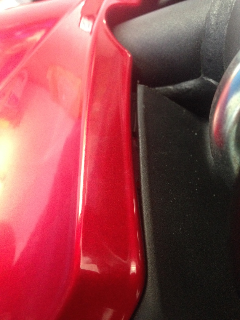 Zum Thema Spaltmaße, anbei ein paar Bilder. Manche werden wahrscheinlich sagen dass ist nichts, aber so etwas habe ich an keiner anderen NC bis jetzt gesehen. An einem Auto würde man auch reklamieren wenn ein großer Spalt im Armaturenbrett währe, den man mit einer Geräuschkulisse großzügig hin- und her drücken könnte.