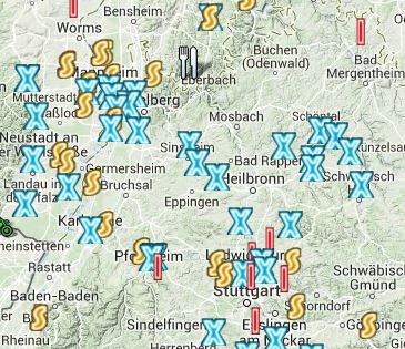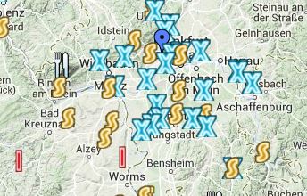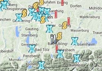 Wenn also jemand weiss wo er hinfährt und sich im Vorfeld über Lokalempfehlungen informieren möchte (oder vielleicht auch schauen möchte wer in der Nähe wohnt) muss er die Karte um sein Zielgebiet herum vergrössern um was zu erkennen, dann sollten die Lokale auch auszumachen sein.