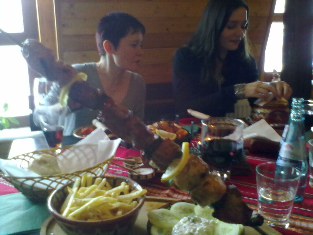 Mein Fleischspieß, an dem ich mengenmäßig fast gescheitert bin, war so lang, dass man ihn nach der Mahlzeit sicher auch als Degen hätte verwenden können…