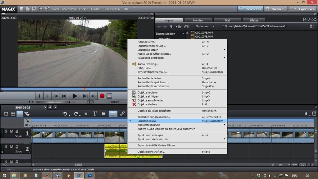 - Wie bearbeite ich die Lautsärke unter einem Clip, bzw. in einer seperaten Spur? Ich bekomme nur das Audio-Cleaning-Fenster auf. Ich würde gerne eine kleine passage leiser machen, ausblenden, stumm schalten. Das sollte doch mit zwei, Drei Mausklicks zu machen sein...