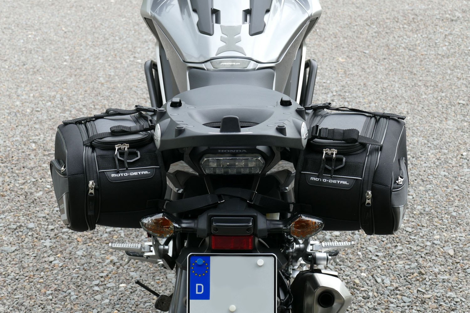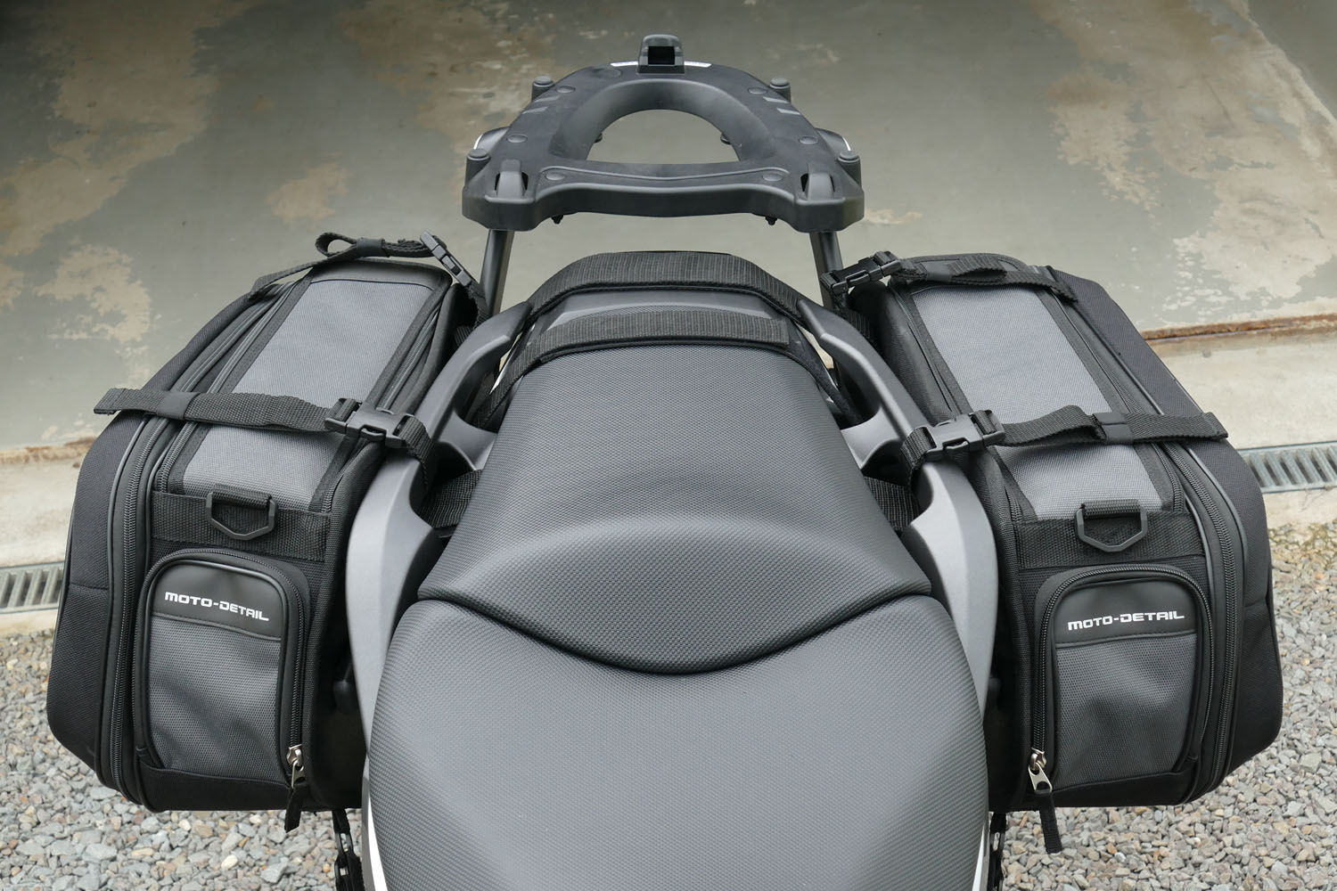 Bei diesen Moto detail ist mir auf einer Tour ein Riemen gerissen, die Tasche umgeklappt, und hat am Reifen geschliffen. War dann ein Fall für die Tonne, aber wir hatten Glück, dass nichts in die Kette ging. Bei einer Tour davor hatten wir das Zelt in einer Packrolle darüber dabei, und die Tasche daran mit zusätzlichen Spanngurten befestigt. Nach dieser Erfahrung empfehle ich, die Taschen immer mit zusätzlichen Spanngurten zu sichern..