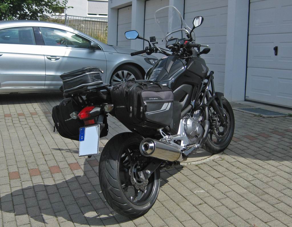#20 Zitat von crossover567Alles anzeigenWenn es für mehrere Tage auf Tour geht montiere ich an meiner NC 750 X die Satteltaschen von Moto-Detail (Louis), Art.-Nr. 10027825, in Verbindung mit einem Givi Topcase. Tanken ist kein Problem. Von den drei Klettbändern muss nur das mittlere geöffnet werden. Das vordere Klettband ist unter dem Sitz durchgeführt und das hintere liegt außerhalb des Soziussitzes.