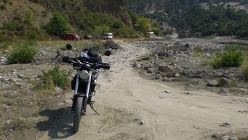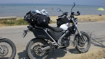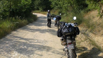 2011 waren wir zwei Wochen in Griechenland und den Balkan unterwegs. Gefahren sind wir mit zwei G 650 Xcountrys von BMW - 53 PS, 160 kg, durchschnittlicher Verbrauch 3,3 Liter, Federweg vorne 220mm, hinten 165mm. Den Federweg erwähne ich deshalb, weil das bei den schlechten Straßen von Vorteil war. Da wir zu dieser Zeit keine verlässlichen Informationen über die Infrastruktur bezüglich Tankstellen Hotels usw. bekommen konnten, haben wir noch einen Zusatztank mit 7 Liter verbaut. Der originale Tank fast 9 Liter, was ja nicht viel ist.