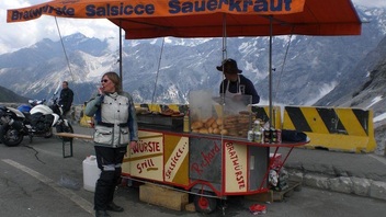 Erster Halt Stilfser Joch. Eine Vinschgauer Wurst mit Sauerkraut ist hier ein absolutes Muss.