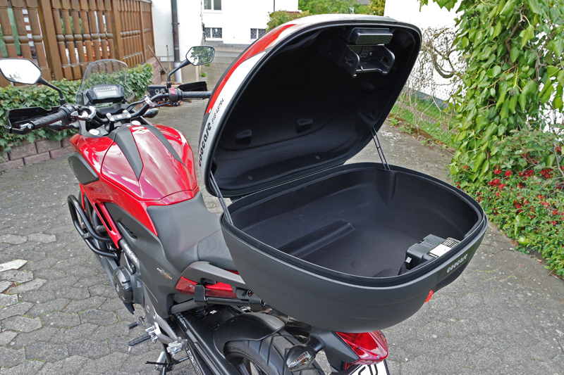 Ich benötige ein großes Topcase um Materialien und Co (ev. auch Laptop) für die Arbeit mitnehmen zu können.