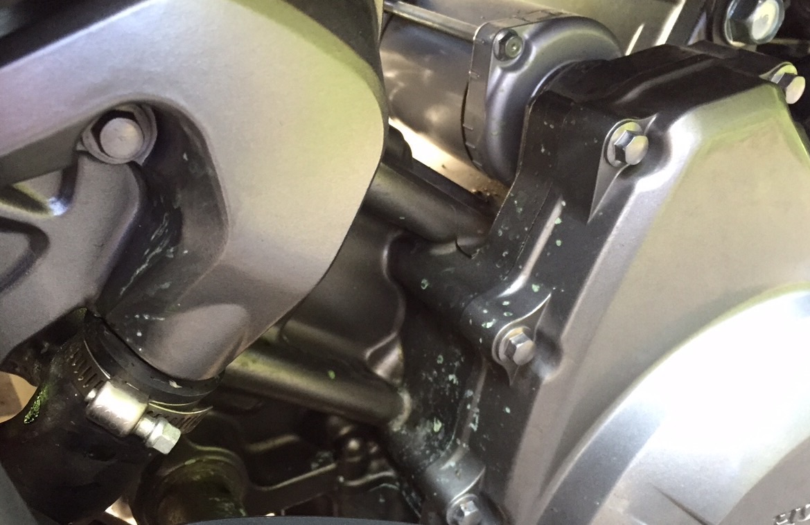 Mir fielen gestern nach einer kurzen Tour fröhliche blaue Spritzer auf dem Motorblock vorne links auf. Nach einer kurzen Recherche hier im Forum war die Ursache klar (