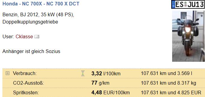 Seine Kawasaki 900rs möchte übrigens 4l/100km für die selbe Strecke.
