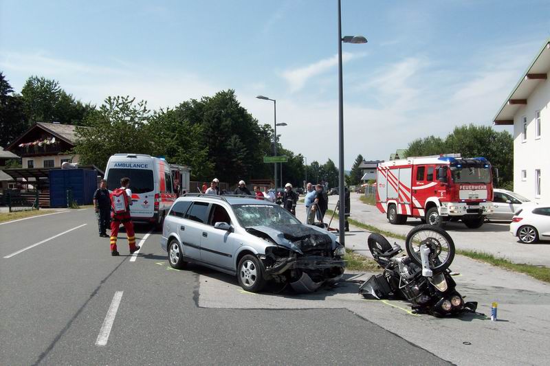 Er wurde frontal von einem Linksabbieger aufs Korn genommen (man beachte den Zustand und die Endlage seiner Twin...), der auf einen Möbelhausparkplatz wollte (zudem noch in die Ausfahrtspur...).