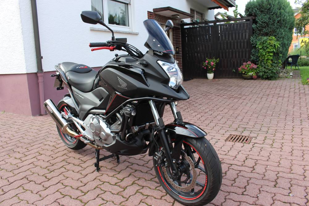 Das sieht mir nach einem oliv eingefärbten original Honda Zierbügel und original Honda Zusatzscheinwerfern aus. Schau mal auf der Honda Website unter NC750X. Rechts am Rand kannst Du auf "Zubehör" klicken.