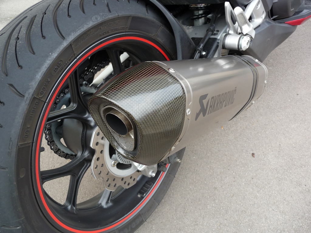 Über die Qualität und die Verarbeitung von Akrapovic brauche ich wohl nichts weiter zu schreiben. Der Klang ist angenehm dumpf aber nie aufdringlich. Es ist noch ein 2. Db-eater mit etwas größerem Durchmesser dabei. Damit wird der Klang noch dumpfer.
