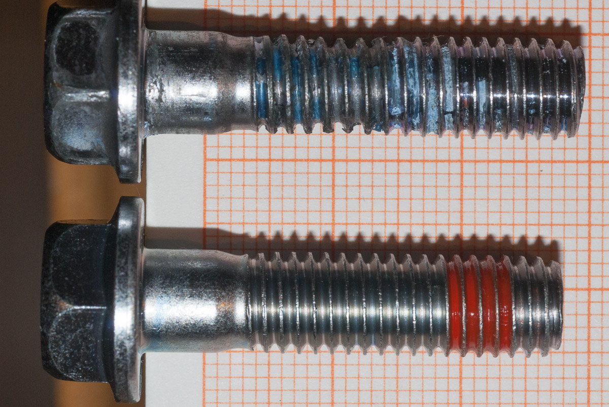 Originalschraube ist ein rotes fest auf der Schraube eingetrocknetes Mittel. Beim Einschrauben