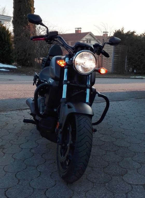 Die vorderen Blinker der CTX sind immer an, d.h. wie in USA dienen sie als gelbe Positionsleuchten. Im der CTX Facebook-Gruppe hat einer aus Montreal die Originalblinker mit Klarglasabdeckungen und einem fertig kaufbaren LED-Einsatz zu Tagfahrlichtern umfunktioniert. Die Verkabelung würde dafür bereits passen. Ich bin am überlegen, ob ich das auch so löse. Vielleicht benutzte ich die Blinker aber erstmal so wie sie sind.