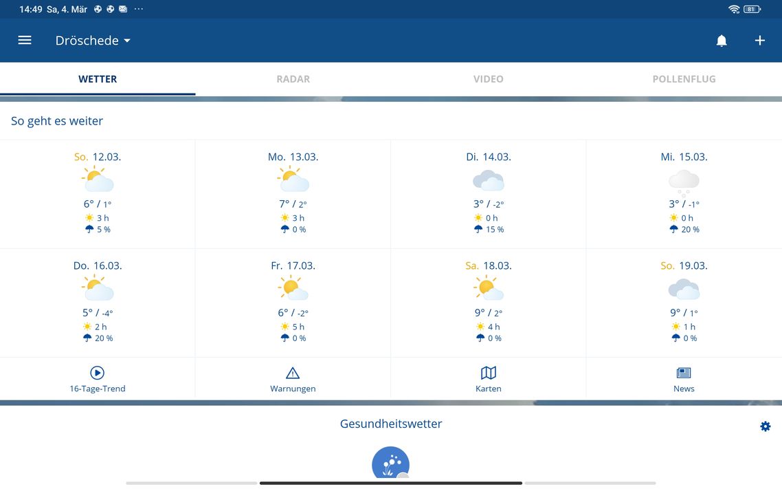 Bei uns heute 17 Grad und Sonnenschein -