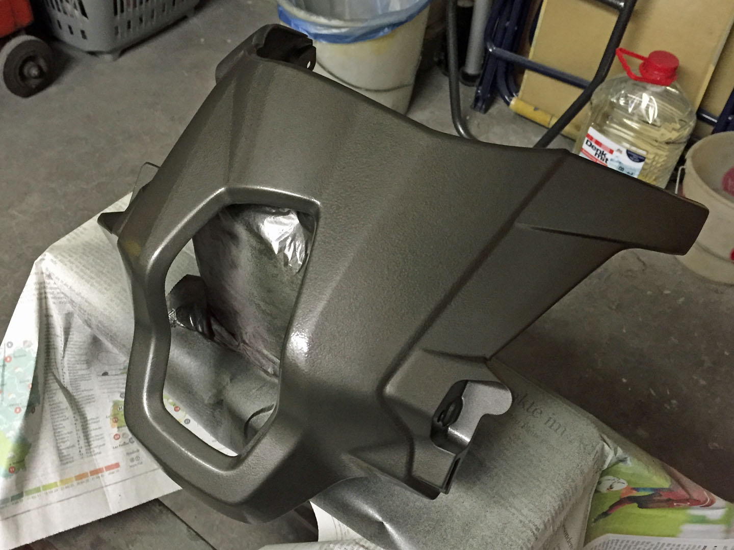 Von einem netten Forenmitglied habe ich dann 2 vordere Blinker, zwar ohne Stecker, kostenlos erhalten, danke Robert (rherz), neue Fußrasten, Satz l+r gab es in der Bucht für 26,90 € inkl. Versand der Schalthebel ist wieder gerade gebogen und das Scheinwerfergehäuse werde ich bei Gelegenheit neu lackieren Dunkelgrau Hammerschlag, in der Farbe habe ich auch schon das hässliche Hellgraue Mittelteil vom unteren Windlauf lackiert.