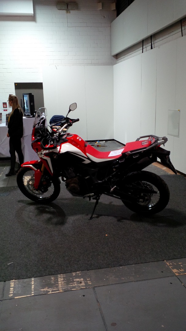 Soweit ich das sehen konnte, gab es die Africa Twin zwei bis dreimal auf der Messe. Dabei wurde sie jedoch nie von HONDA präsentiert, sondern von Fremdunternehmen, wie z.B. Ausstattern etc. Daher konnte man leider auch nie Probesitzen -.- und die Präsentation war dementsprechend auch nicht so super.