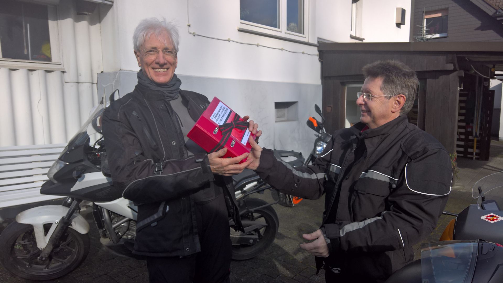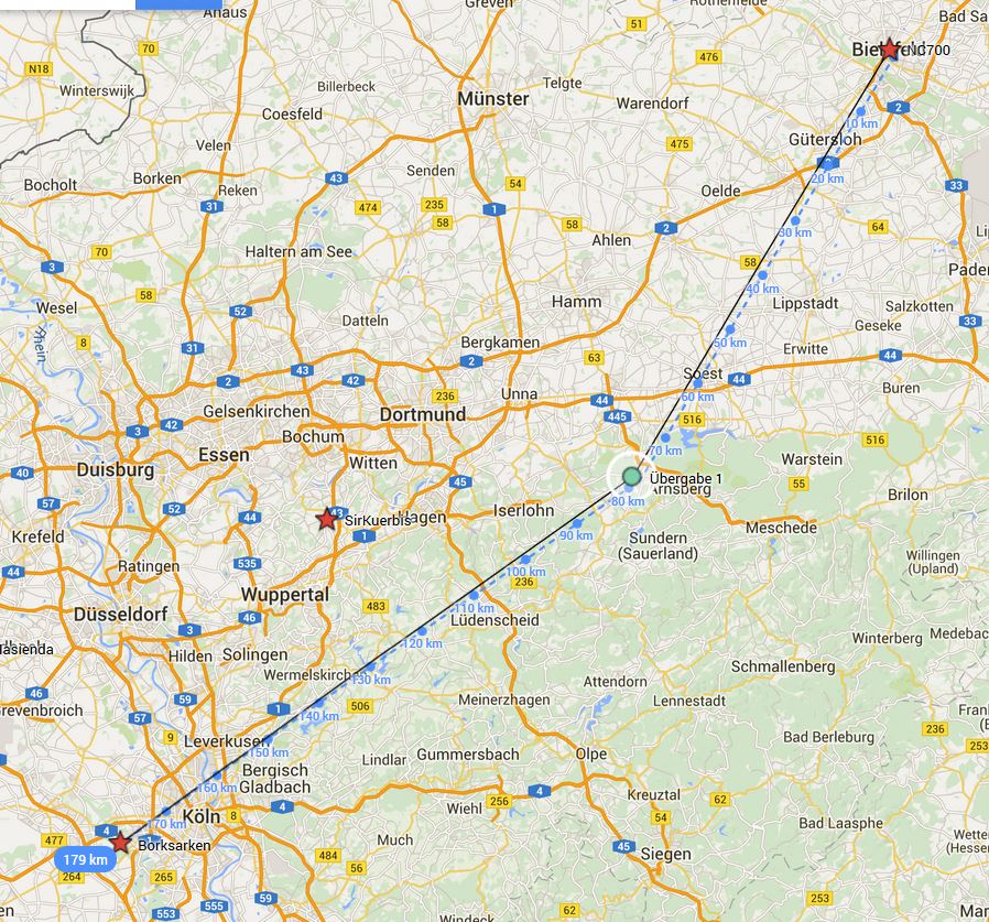Zum Anfang gab's deshalb auch gleich ne Einzelkabine:[attachment=2]20160206_104235.jpg[/attachment]Die erste Etappe betrug rund 91km und endete in Arnsberg[attachment=1]Strecke.jpg[/attachment]Feierlich übergeben an Pitter (borksarken), dokumentiert von didi:[attachment=0]WP_20160206_12_48_34_Pro_LI.jpg[/attachment]danach gings zu dritt noch an den Möhnesee wo wir vergebens versuchten Verpflegung aufzunehmen, der Andrang war einfach zu groß.