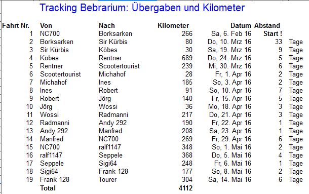 Und damit hat das Bebrarium gestern die 4000km-Marke geknackt :mrgreen: