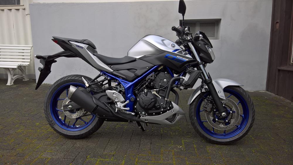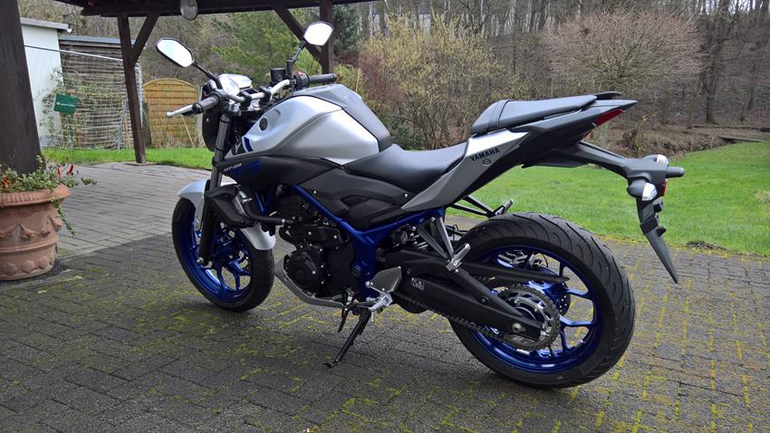 Ende letzte Woche wurden die ersten MT-03 an die Händler ausgeliefert, seit heute steht eine in unserer der Garage