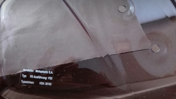 Wenn Du also solch einen Aufkleber beschaffen (anfertigen lassen) willst und mir die Kosten vorher mitteilst, würde ich mich u.U. beteiligen.Die Vario-Tourenscheibe stammt laut mitgelieferter Rechnung aus 2014 ursprünglich von BS-Motoparts. Dort hatte ich auch mal nachgefragt und habe daraufhin das "grüne" ABE-Heft mit der Nummer 38182*12 erhalten. Aber eine Identifikationsmöglichkeit weist die Scheibe nicht auf.