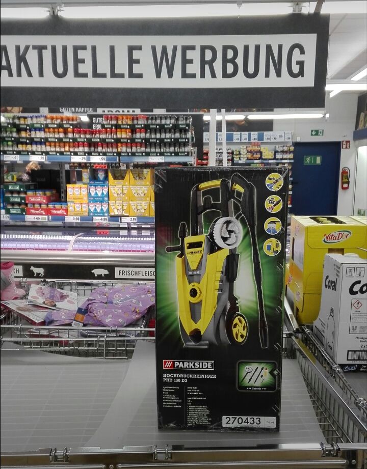 Nach dem Parkside kam bei und dann ein Nilfisk P.2 mit 160 Bar bei 600l/h. Die Leistungsaufnahme des 35 KG Monsters liegt bei 3,3 KW. Wir hatten es einfach satt die Geräte nicht nutzen zu können wenn wir wollten... Wir hätten den Parkside auch reparieren können, wollten wir auch nicht, weil selbst der kurze Schlauch nervte.