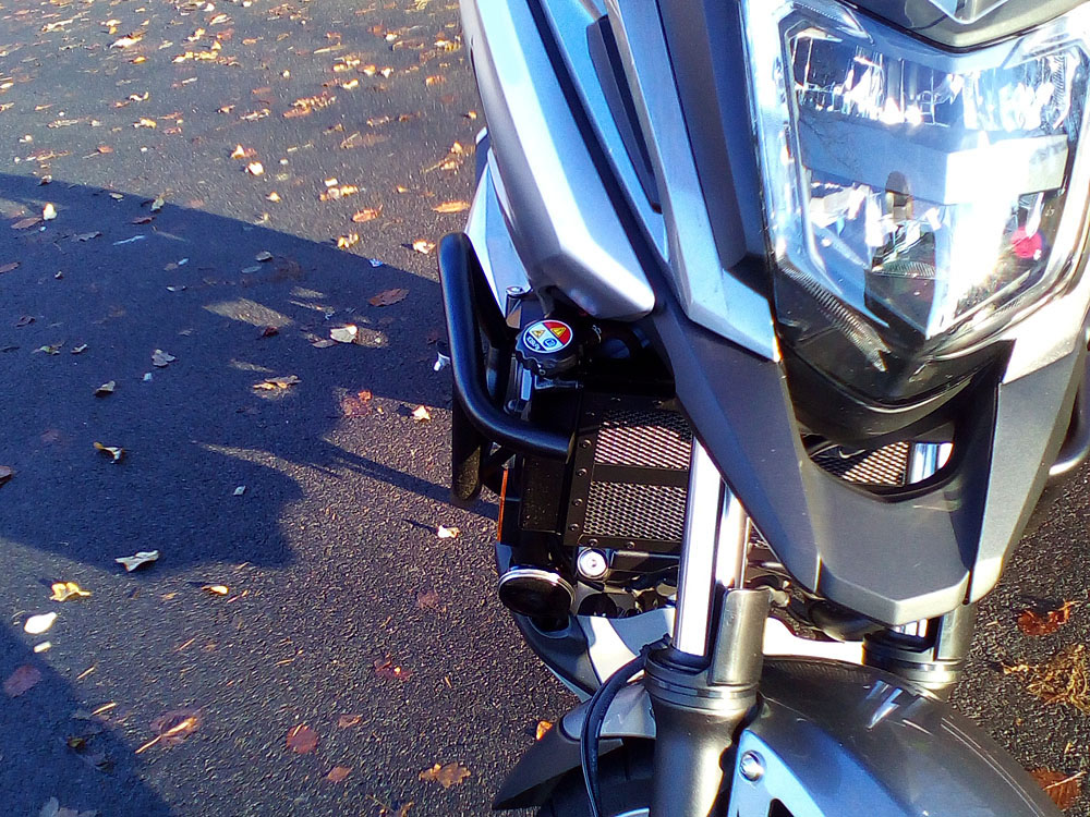 An meiner NC 750 X sind die kleinen Bügel von HEED montiert (s. Fotos). Ich habe das Motorrad zwar noch nicht auf die Seite gelegt um zu testen, ob der Motordeckel und die Seitenverkleidung geschützt sind, aber mit dem Anlegen eines Holzbrettes kann man einen Bodenkontakt simulieren. Demnach haben weder der Motordeckel noch die Seitenverkleidung Bodenkontakt.