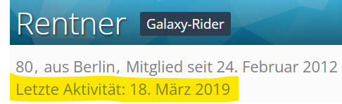 Ist auch ´ne Weile her dass er zuletzt hier aktiv war: