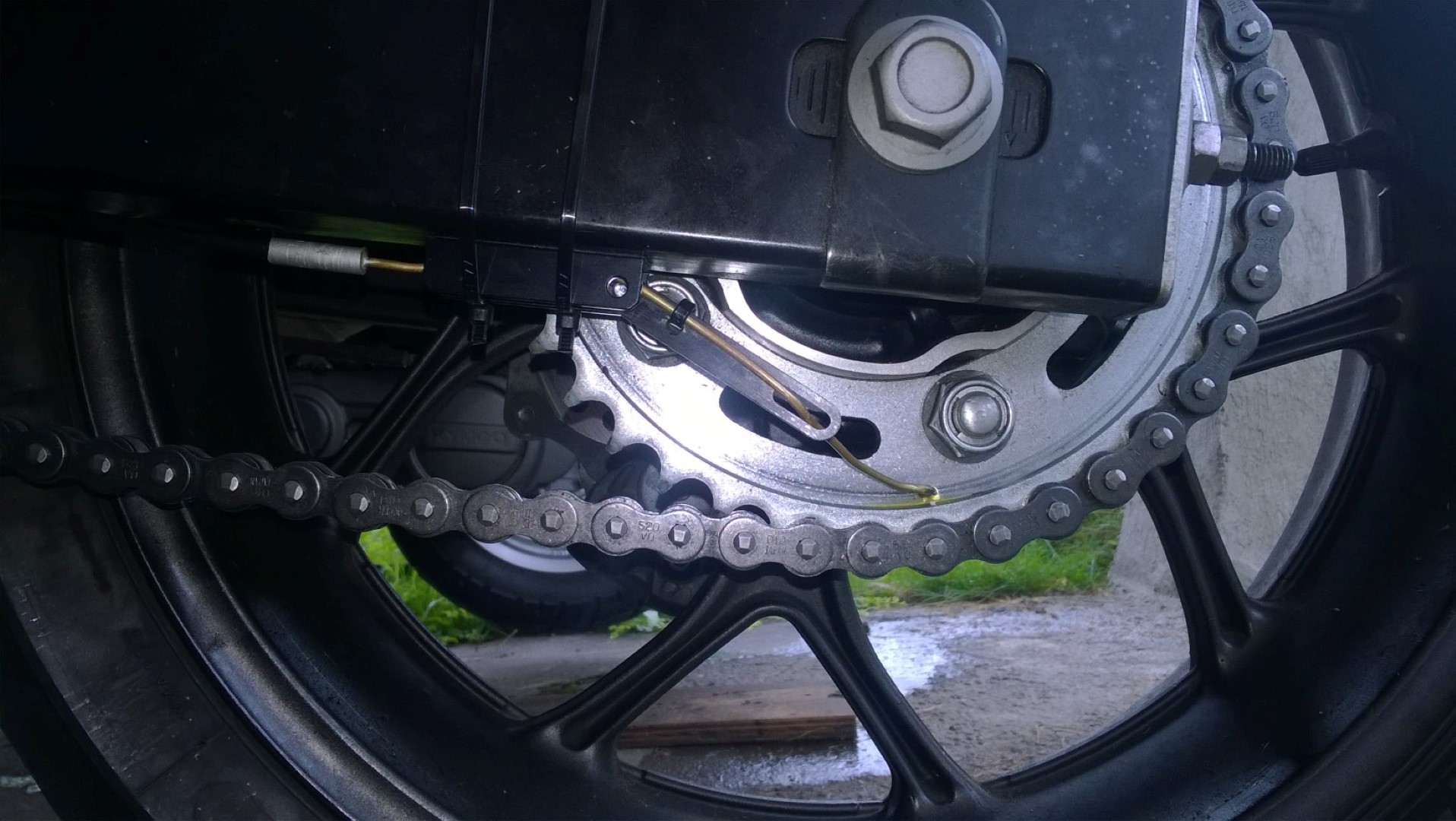 ......und dran. Erst dachte ich, das klappt nie. Ist aber selbsterklärend. Gestern montiert und getestet.kette und Ritzel vorher vor altem Kettenfett gereinigt. Löppt.... ;)