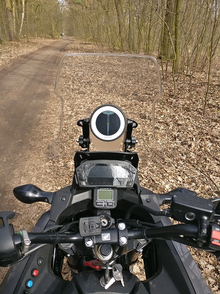 Akku hält Navi-typisch , braucht also einen Stromanschluß den ich mir noch an den Lenker legen muss. Das Display habe ich mit einer Anti-Reflektionsfolie beklebt , lässt sich bei direkter Sonneneinstrahlung mäßig ablesen.