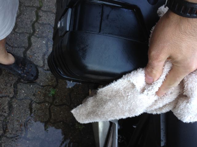 In den Koffern: Der Anzug für die Feierlichkeit, Schuhe und Co... und was soll ich sagen: Durch so kurzer Regenfahrt NASS!