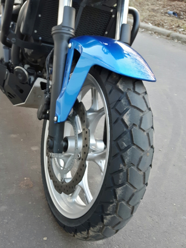 Bisher bin ich erst etwa 200 km gefahren und aufgrund der niedrigen Temperaturen von bis -5°C habe ich auch noch nicht so viel Schräglage probiert, kann zum Fahrverhalten also noch nicht so viel beitragen. Insgesamt fährt er sich aber sehr ruhig (bis 180 km/h getestet) und ich bin bislang zufrieden.