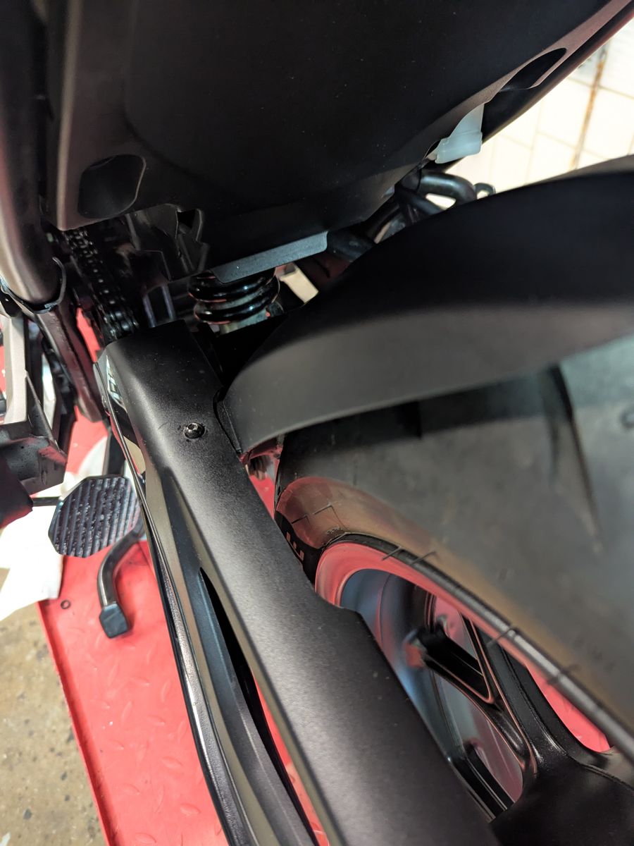 Zum drunter legen dann die Schrauben vom Kettenschutz gelöst bzw die Hintere dann zum verschrauben der beiden Teile ganz rausgenommen. Ist eh schon fummelig :)