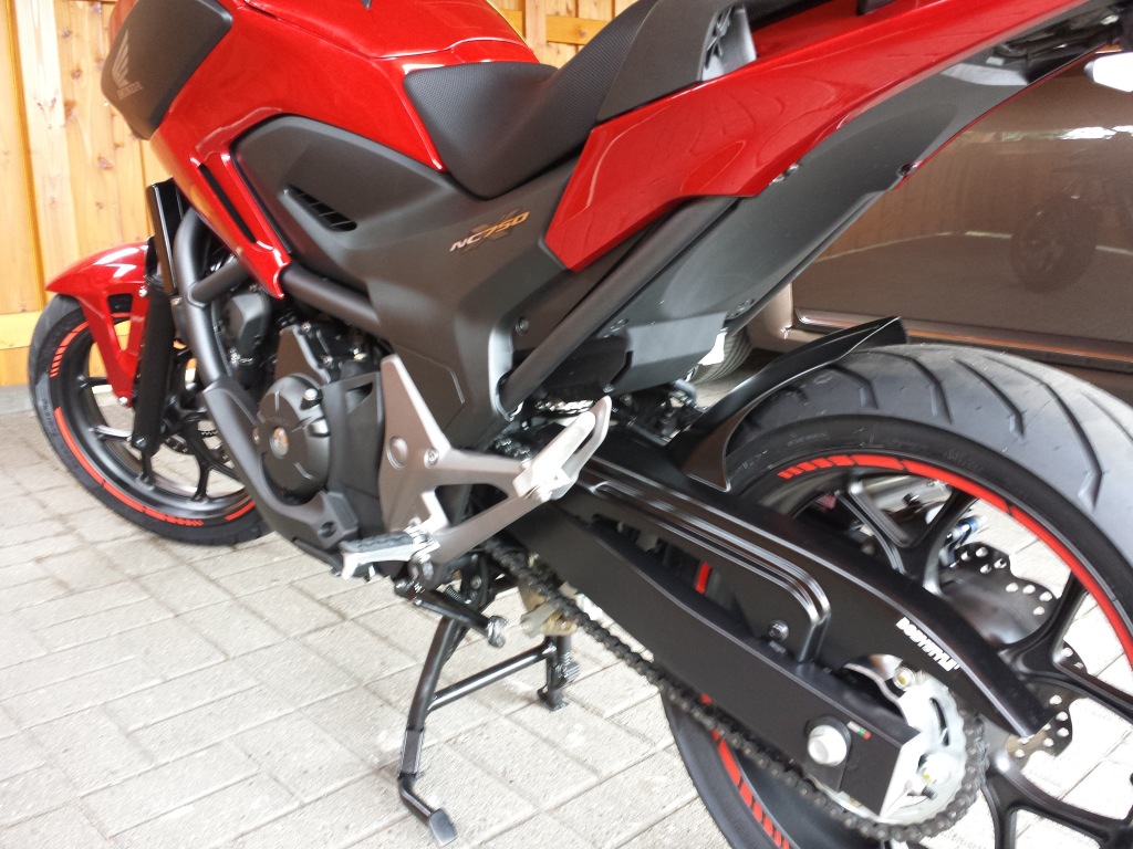 Ich habe den Spritzschutz am Hinterrad noch einmal etwas verbessert. Vom Heckumbau meiner Duke ist noch ein bissel Radabdeckung übrig geblieben, den ich zugeschnitten und unter die orig. Halterung geschraubt habe.