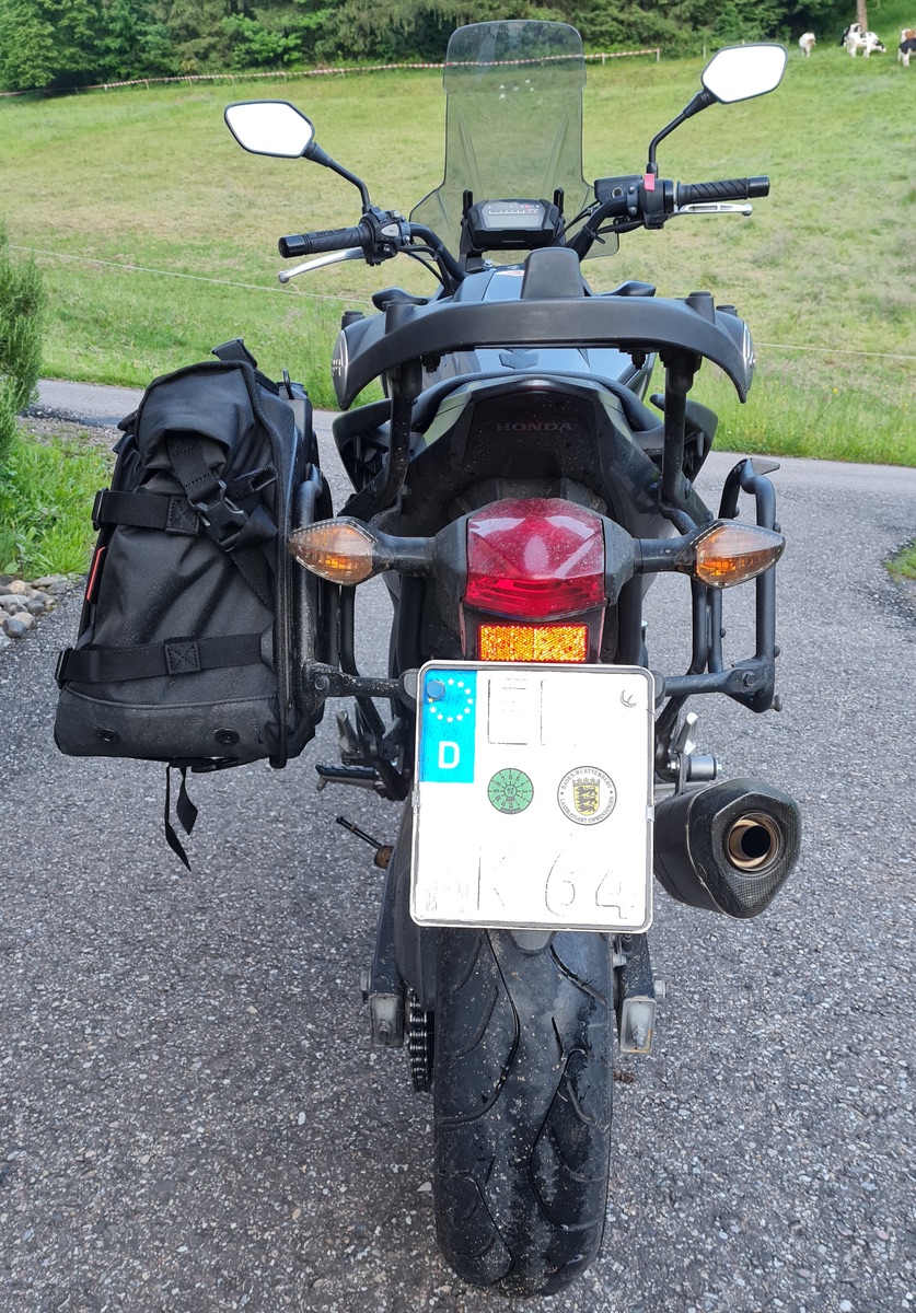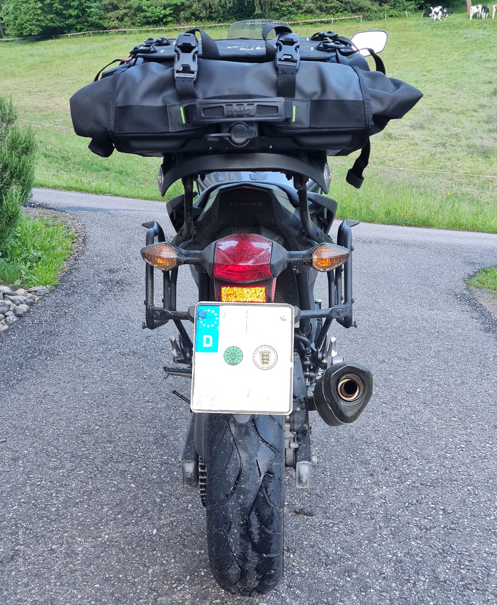 Für kleine Strecken können wir jetzt eine Tasche auf den Topcase-Halter montieren und haben auf der Sitzbank mehr Platz.