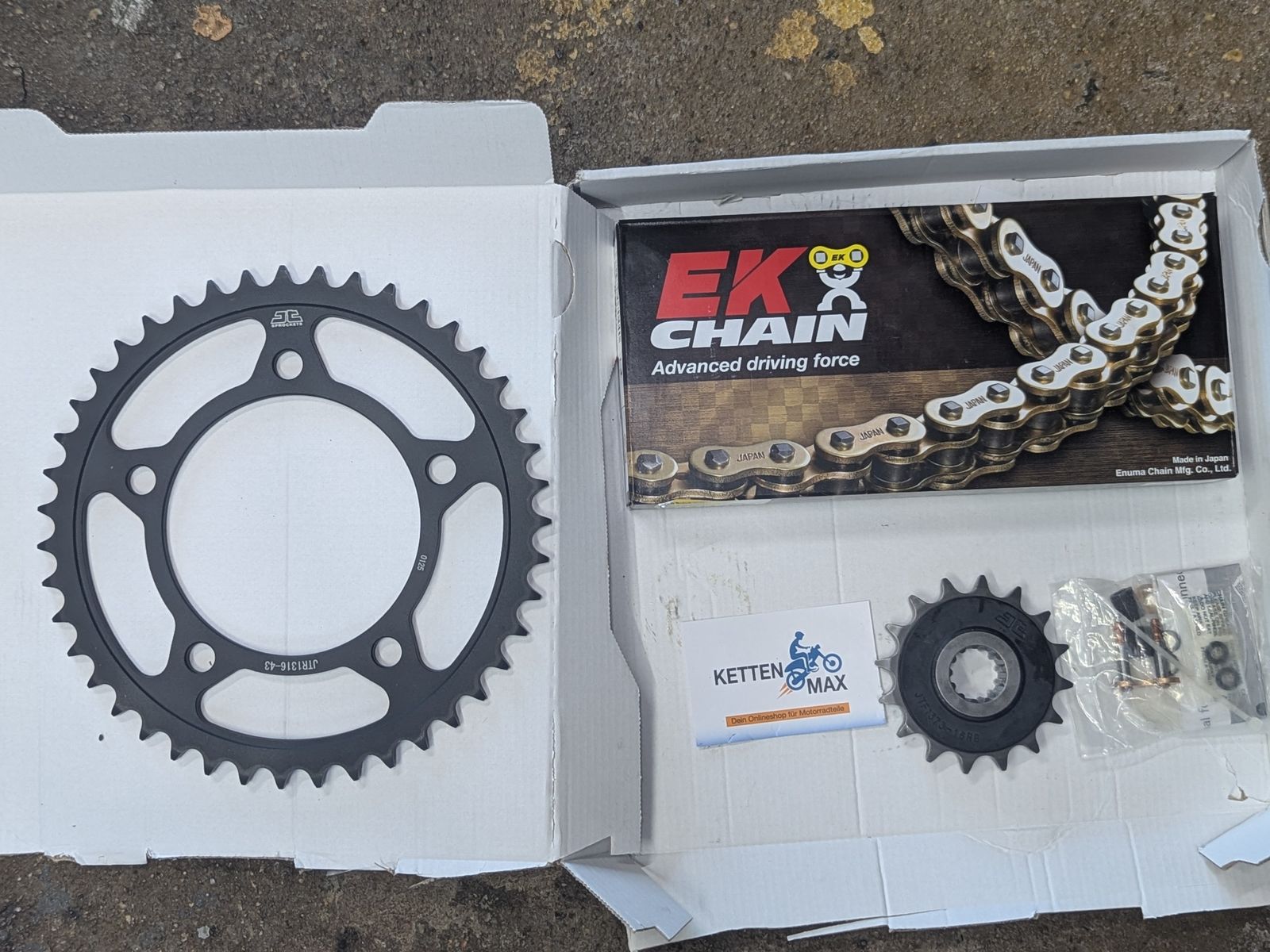 Bei der nächsten Inspektion habe ich dann ein Referenzmaß wenn die Kettenspannung auf mein Gewicht eingestellt wurde