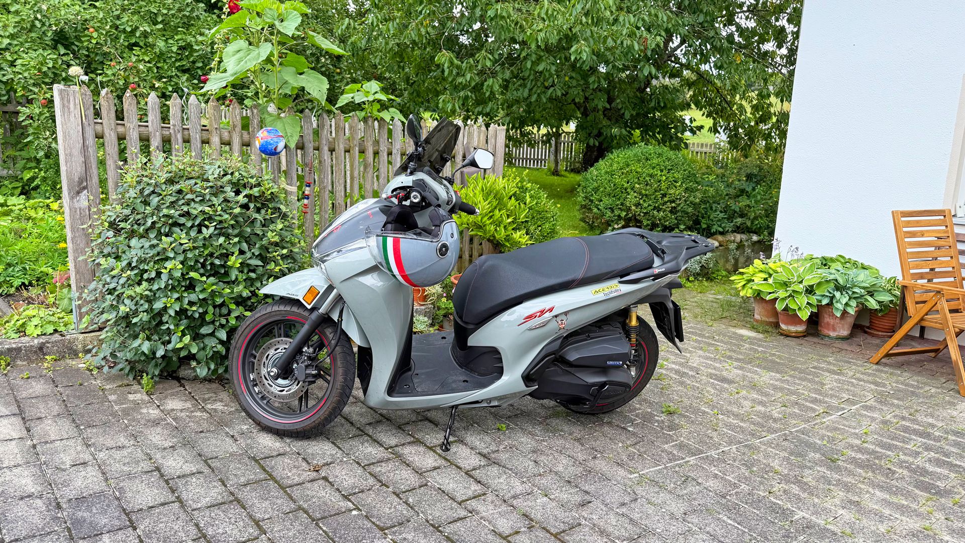 Und genau das gedacht, Gott sei Dank keine kette an dem neuen Motorrad. Ne aber die Honda, muss ich sagen ist trotzdem mein lieblings Motorrad. Die BMW ist für Iron Butt und das meine Frau und ich mit unseren Kindern fahren können zusammen. Aber jetzt hab ich ne fahrende Einbauküche, mit Radio wo ne richtig old school Kassette mit Schlager drin gewesen ist.