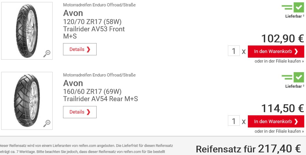 Das Entrümpeln meines Abstellraums hat neue, unbenutzte Avon TrailRider in den NC-Größen zu Tage gefördert.