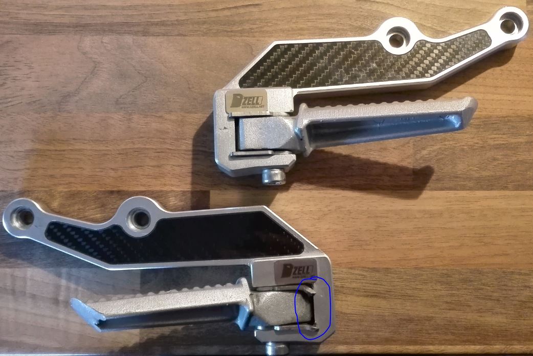 Bei der rechten Raste ist der Anschlag etwas verbogen (siehe Bild), ohne Auswirkung auf die Funktion.