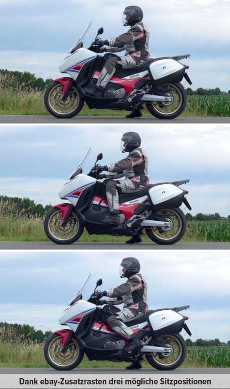 Ich hatte mir von Kradblatt-Markus mal diese Dzell-Zusatzfußrasten gesichert um bei einer Probefahrt mit einem Integra auch die sportliche Sitzposition testen zu können.