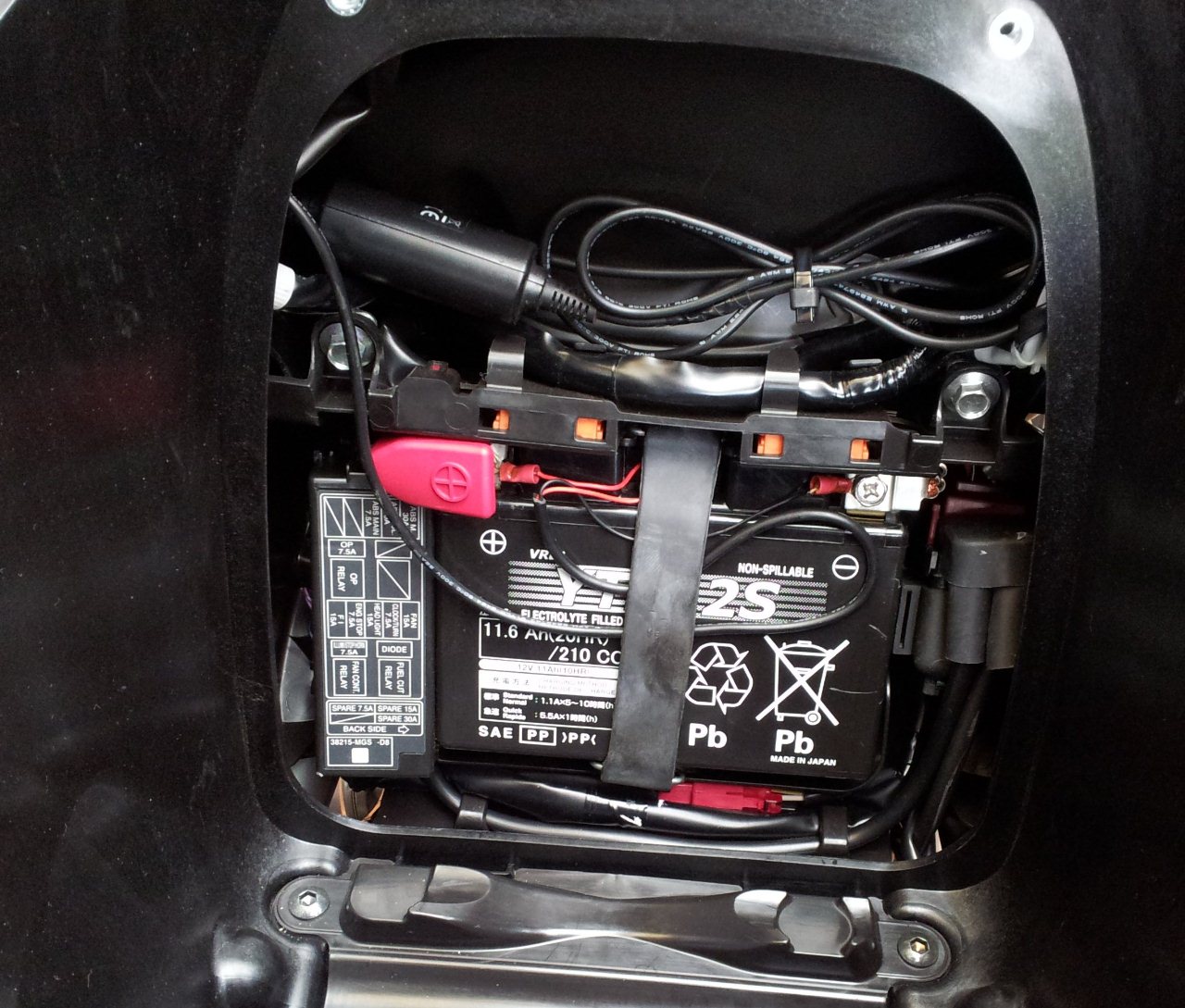 Die Verkabelung, die ich bekommen habe (weiss nicht, ob das im Lieferumfang so ist) sieht 2 Klemmen fuer die Batterie vor, einen 12V->5V Wandler dahinter und ein langes Kabel (ca 1.5m), dass mit einem Stecker zur Halterung fuehrt. Nach Entfernen der Wartungsklappe war das Durchschieben des Kabels extrem leicht, es kam direkt wieder vorne unter der Verkleidung raus, wo ich es dann mit der Halterung verbunden habe. Bin damit heute bei schoenem Wetter und Freizeit mal ein paar Stunden gefahren, klappte alles Prima, selbst noch mit den alten Karten.