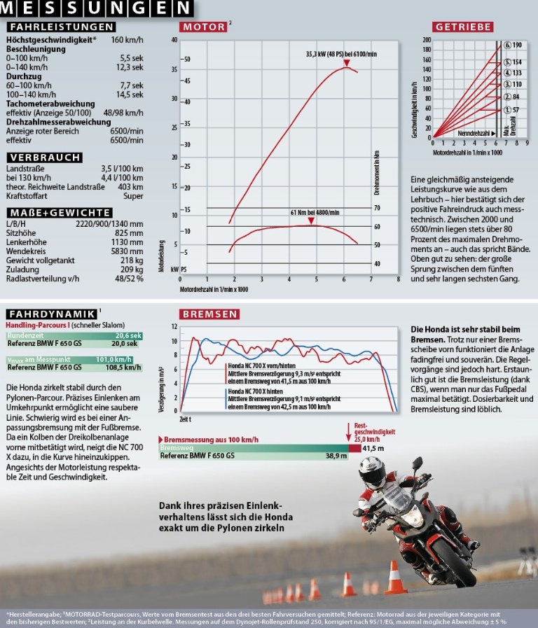 Die Messwerte unterscheiden sich aber erheblich von dem Motorrad Test