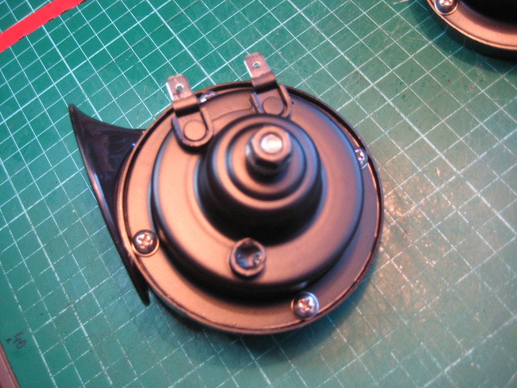 zustande. 0,3 mm für den tiefen und 0,4 mm für den hohen Ton.Da wir ja zwei NC´s in der Familie haben, soll jetzt jeder eins der Hörner an den ogiginal Hupenhalter bekommen. Je Horn ca. 4 A, also kein Problem ohne Relais und mit 115 dB laut genug.