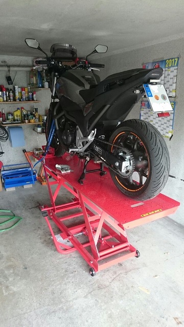 Hallo habe mir eine Motorradbühne gegönnt, endlich steh ich gerade vor meiner Maschine ,kein bücken oder auf dem Boden liegen, und jetzt macht das schrauben viel mehr Spaß. ![]()