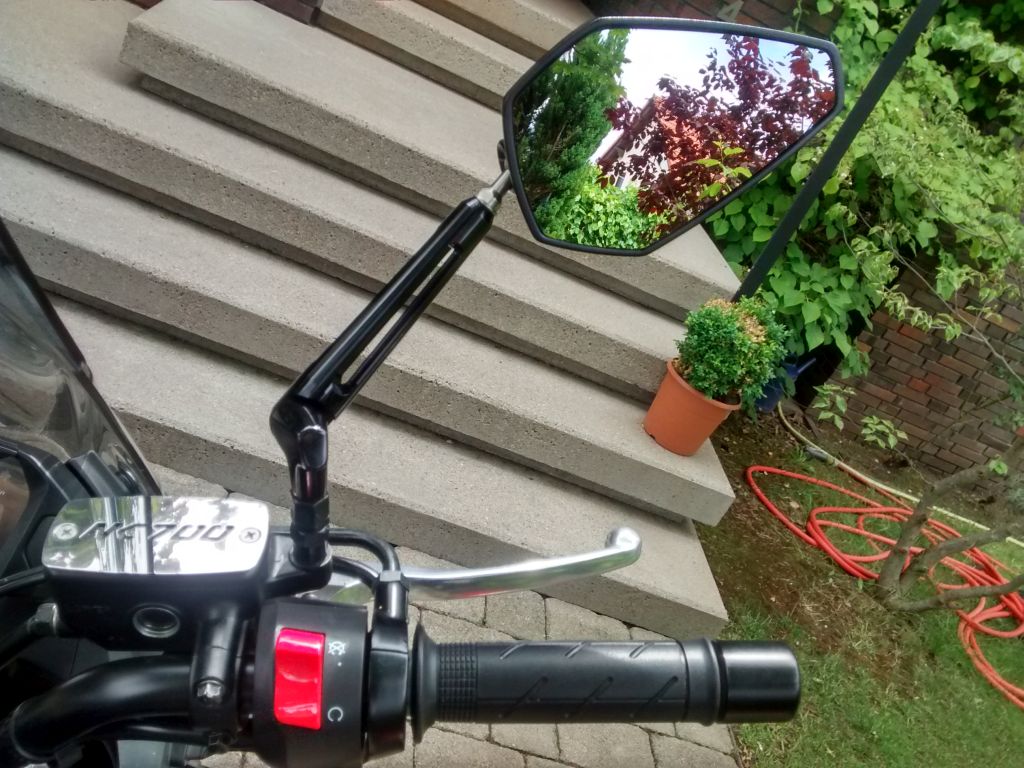 Auf dem dritten Bild sieht man im übrigen den neuen Magazi-Spiegel (noch nicht richtig eingestellt). Er entspricht in der Größe in etwa dem Original und hat gute Verstellmöglichkeiten.