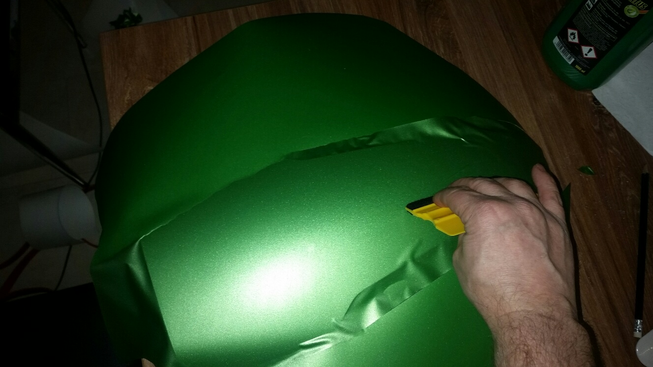 Ein ganz normaler Haushaltfön immer wieder bei knieflicken Bereiche leicht erwärmen.