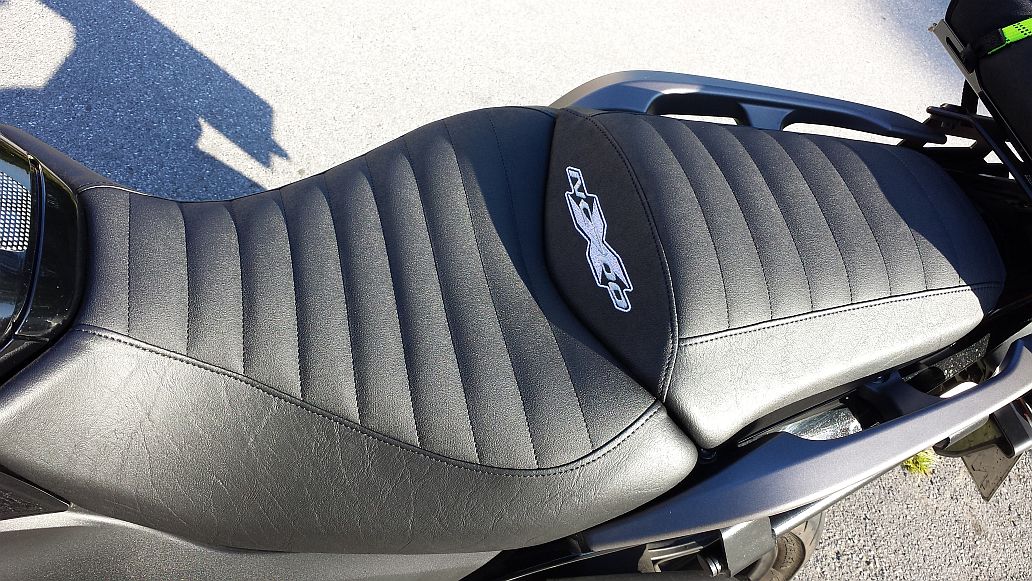 So, nun ist Nr. 84 montiert. Sieht prima aus, allerdings ein ganz anderes Fahrgefühl nach der ersten Runde. Der Sitz hat ganz andere "Druckpunkte", da muss man sich schon etwas gewöhnen. Ich habe eher die klassische Variante. An den Seiten schwarzes Kunstleder statt Carbonoptik, einfache Nähte statt Doppelnähte mit schwarzem Garn, Stickerei in Silber und Grau. Insgesamt 2 cm aufgepolstert, was man im Fahrbetrieb schon deutlich durch die höhere Sitzpositiion merkt.