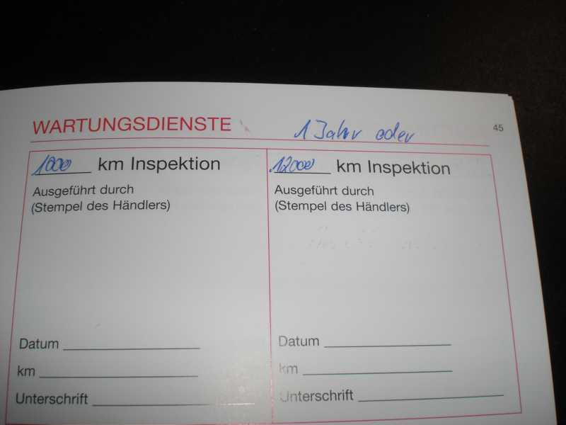 Mein Händler hat mir ins Kundendienstheft unter "Wartungsdienste" reingeschrieben "1 Jahr oder" und dann die jeweiligen Intervalle 1.000km und dann alle 12.000km (siehe Foto). Das hat er mir dann auch noch gesagt - Laufleistung oder eben 1 x im Jahr. Ob das die offizielle Honda-Vorgabe ist, kann ich auch nicht aus dem Kundendienstheft herauslesen.