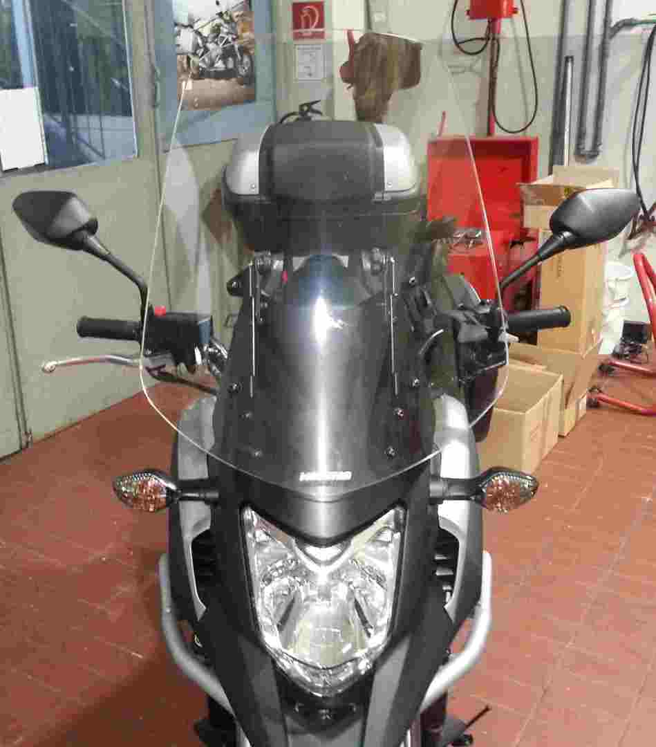 Wie das aussieht zeigt das Bild im Anhang. Die Scheibe ist sehr großzügig in Neigung und Höhe verstellbar. Die Grundplatte (Mounting-Plate) ist eine Massanfertigung für die NC700, passt perfekt und lässt sich auch einfach montieren.