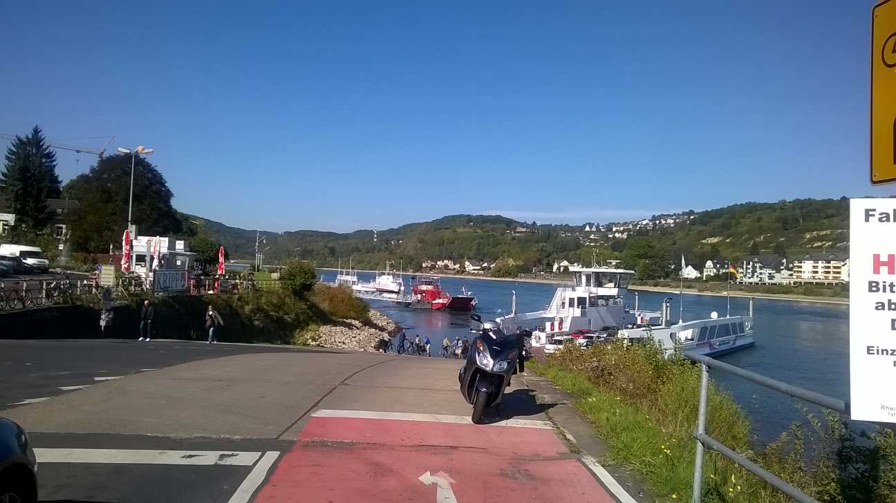 100 km über die BAB (knappe Zeit) von Essen nach Bonn Beul, über den Rhein, B9 am Rhein entlang (sehr schön), bis Anleger Kripp/Remagen: