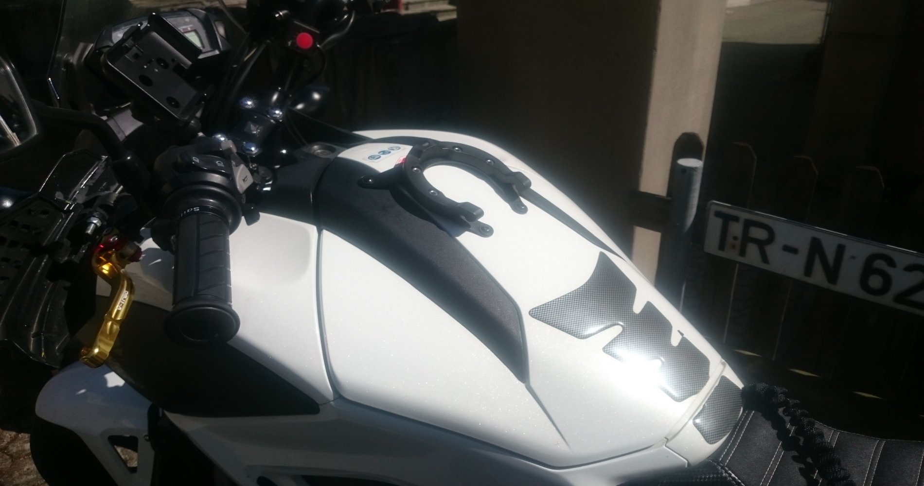 Da es ja meiner Kenntnis nach nur Bagster-Tankrucksack Lösungssysteme gab habe ich mir ein paar Gedanken gemacht und habe eine viel kostengünstigere Lösung gefunden.