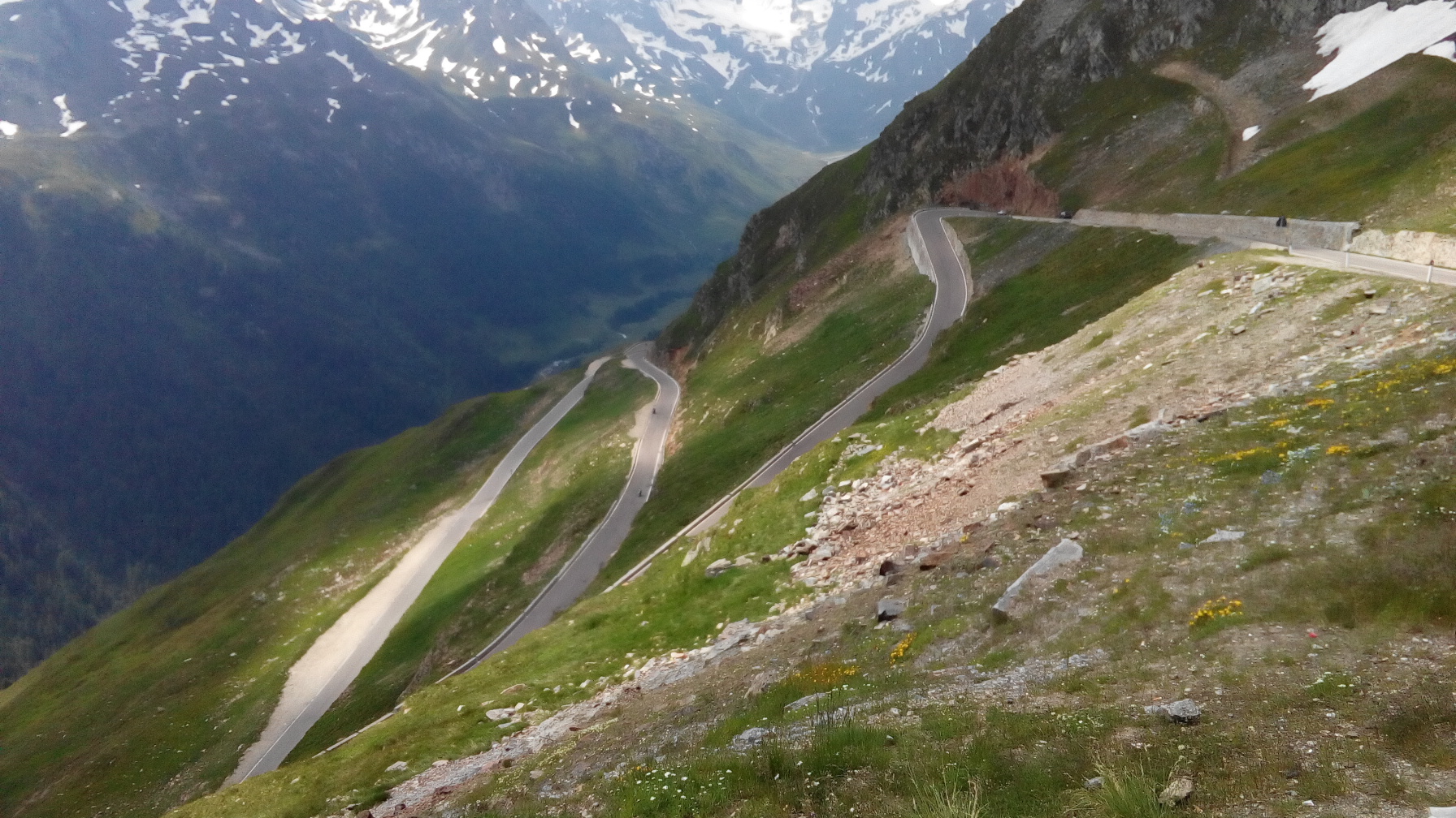 Die italienische Seite ist anspruchsvoller, da die Strassenbeläge wechseln.Und wenn ihr haltet, dann bitte ohne sich und andere zu gefährden. Es waren da einige leichtsinnige Zeitgenossen diesbezüglch auf der Strecke.